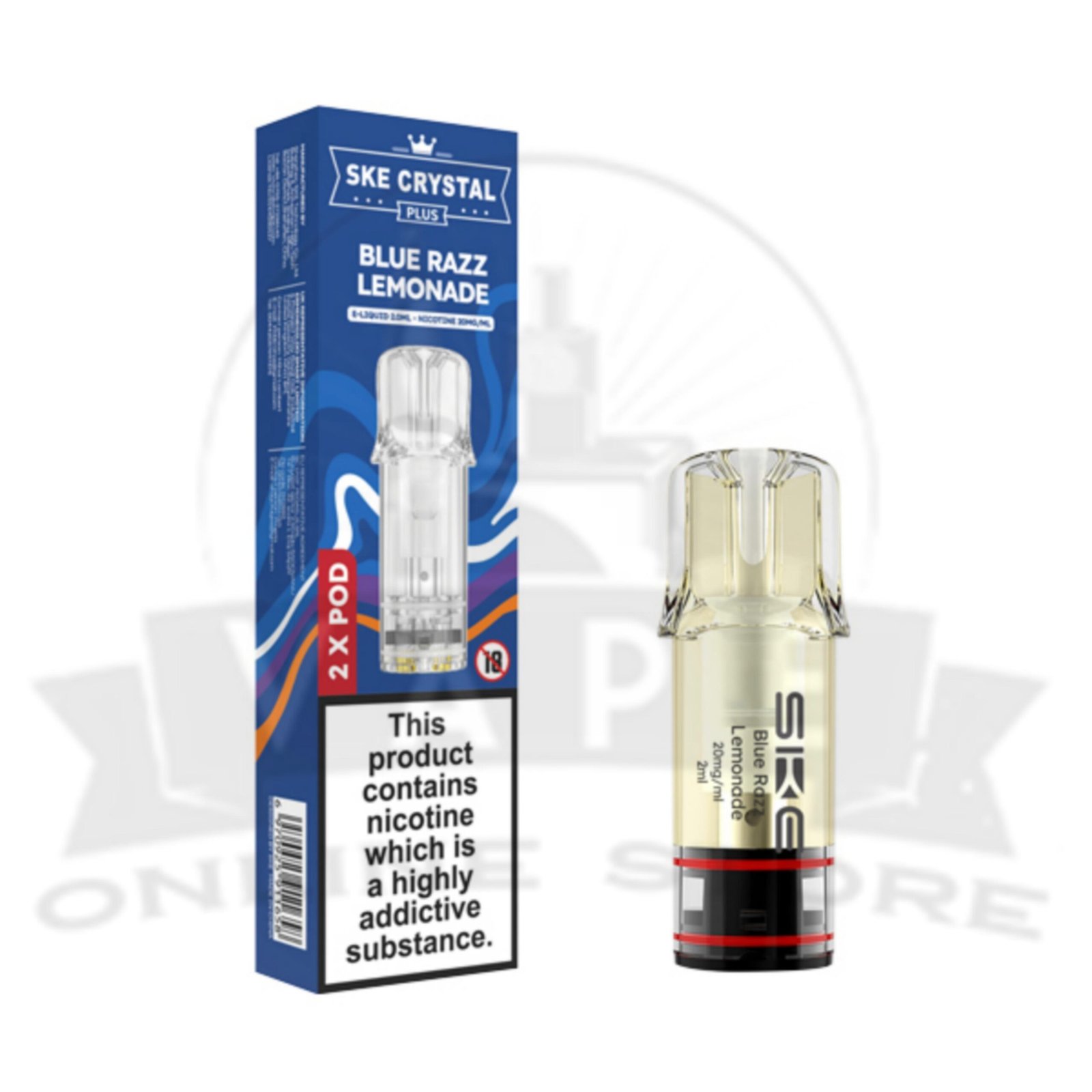 - 2 x 2ml Blue Razz Lemonade SKE Pre-filled pods 20mg
