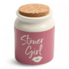 This tropical-themed ceramic stash jar is made in the shape of a pineapple with a green leafy top. The jar has a tight-seal cork that keeps sensitive materials like herbs, spices, medicine, coffee, tea, and so on fresh and sealed for months.