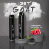 IGET Goat Vape is our brand new device with a 5000 puff~ capacity and 13mL of e-liquid. IGET Goat has a translucent casing displaying remaining e-liquid similar to IGET King. Specifications : 1800mAh Battery, 13mL refilled e-Liquid, draw fire activation and white ring light. It comes in 13 flavours listed below : Cherry Ice, Double Apple Lime, Energy Rush, Fruit Gummy, Lush Ice, Mango Berry Ice, Passionfruit Grape Orange Ice, Pink Lemon Berry, Strawberry Kiwi and Strawberry Watermelon.