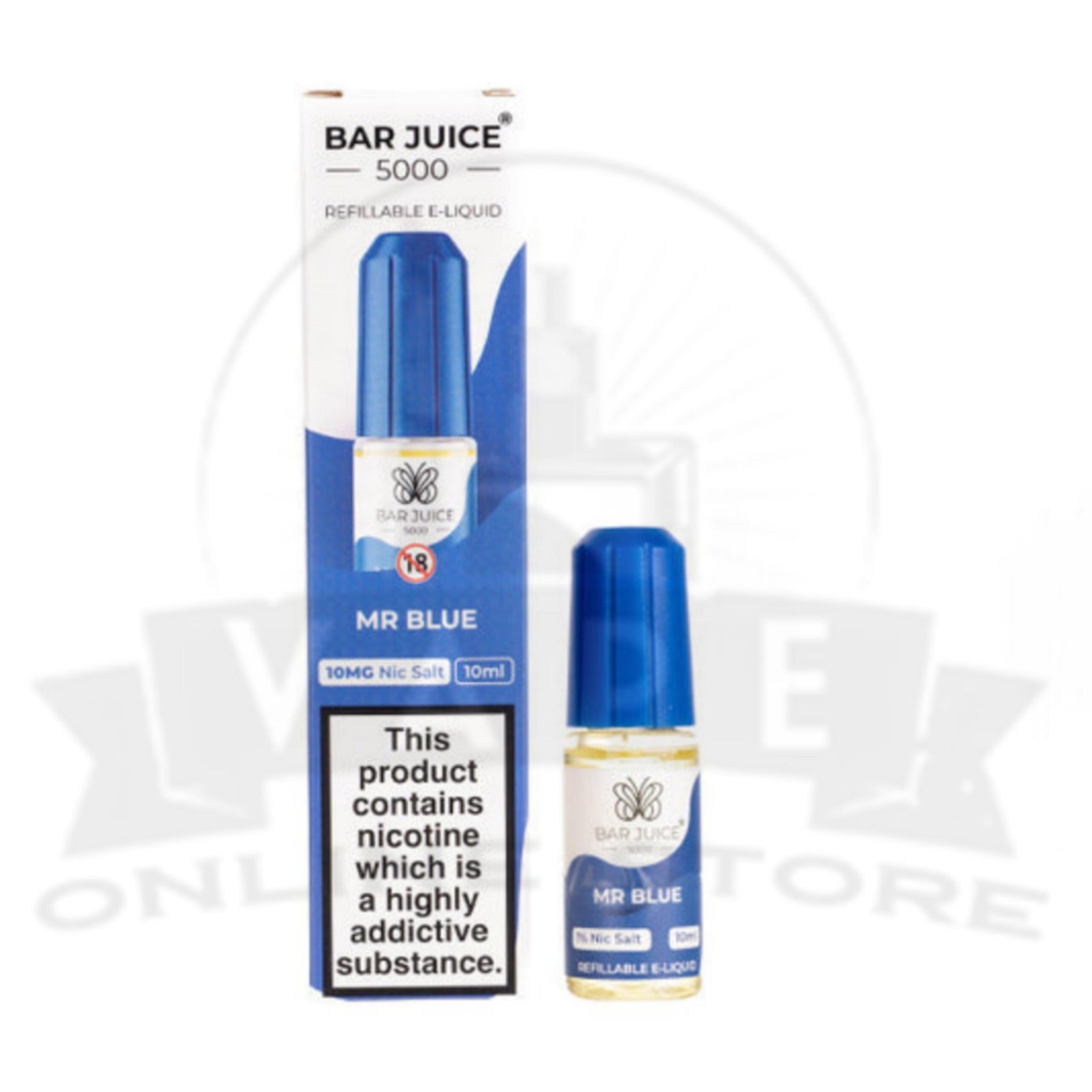 Experience the refreshing burst of Mr Blue Bar Juice 5000 Nic Salt E-Liquid! Each puff delivers delightful flavors, perfectly crafted e-cig pens to tantalize your taste buds. With a 10mg and 20mg nicotine salt concentration, this e-liquid provides a smooth yet satisfying vaping experience. Each 10ml bottle is refillable, offering enough juice for five vape bars, ensuring long-lasting enjoyment.